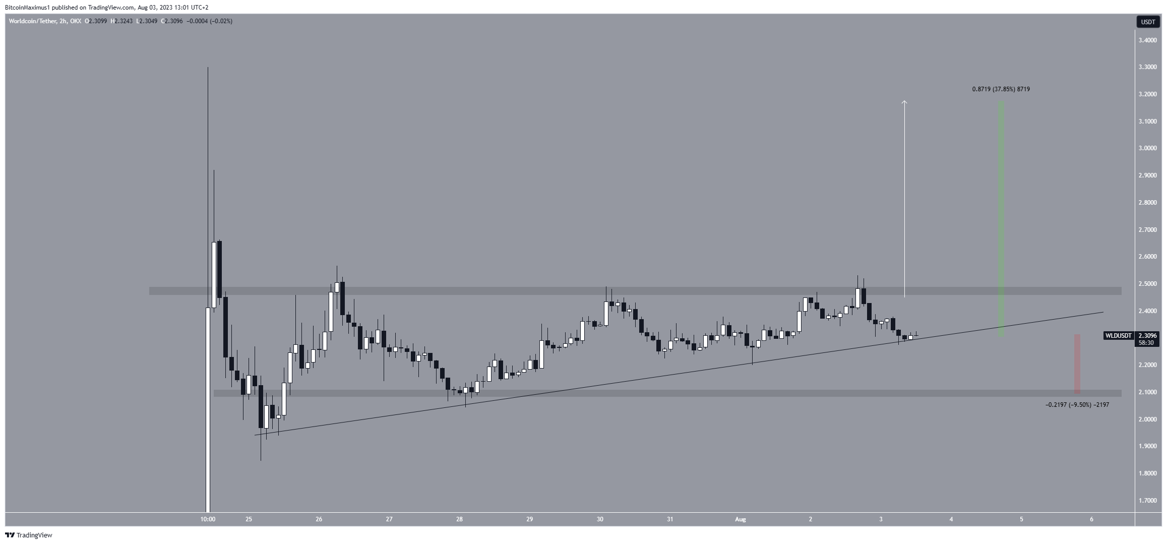 Giá Worldcoin (WLD) đã giảm kể từ khi ra mắt được quảng cáo rầm rộ, nhưng hiện nó đang cố gắng phá vỡ vùng kháng cự ngang quan trọng. Giá cũng giao dịch trong một cấu trúc tăng giá. Một đột phá trên đó có thể kích hoạt mức tăng lên mức cao nhất mọi thời đại trước đó.