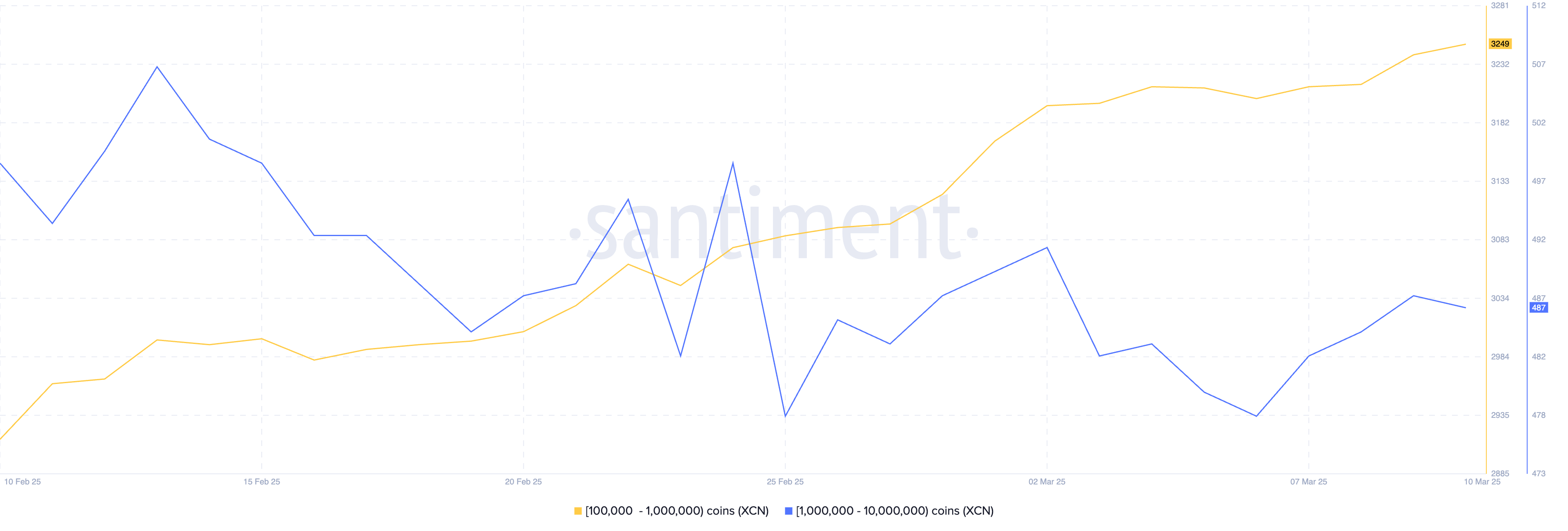 Số lượng ví nắm giữ từ 100,000 đến 10,000,000 Onyxcoin đã tăng từ 3,681 vào ngày 06/03 lên 3,736, cho thấy rằng cá voi tiền điện tử đã tích lũy bất chấp sự biến động của thị trường gần đây.