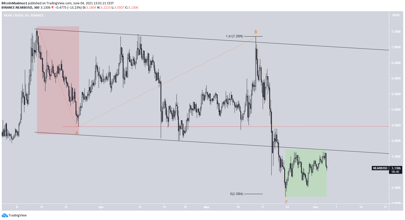 Vào ngày 23 tháng 5, giá NEAR đã giảm xuống mức thấp nhất là 2,21 đô la và sau đó bật lên (màu xanh lá cây). Mức đáy này đã xác thực đường hỗ trợ tăng dần trong dài hạn, được hình thành từ tháng 11 năm 2020. Hơn nữa, đường hỗ trợ ngang $2,70 cũng đã được xác nhận.