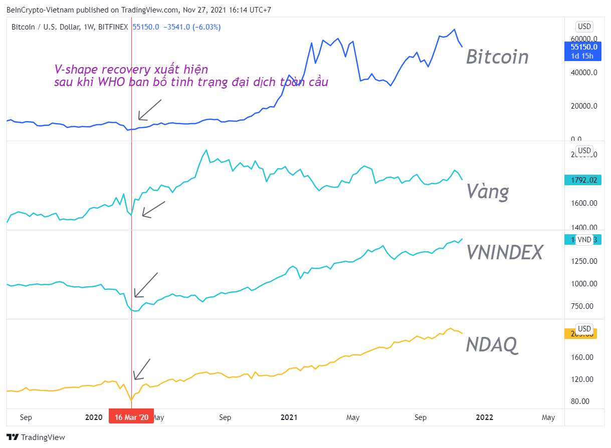 Việc các thị trường thể hiện sự tương quan chặt chẽ trước một tin tức thế này đã từng xuất hiện vào hồi tháng 3/2020. Khi đó WHO lần đầu ban bố tình trạng đại dịch. Sự hoảng loạn và panic sell đã xảy ra khắp nơi, nhưng vài tuần sau đó toàn bộ thị trường bước vào cơn phục hồi và tăng trưởng lớn nhất từ trước đến nay.