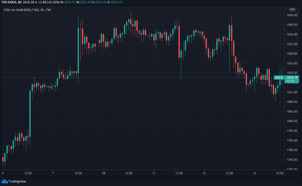 Nhìn chung giá vàng có sự khởi sắc trong tuần qua. Giá vàng tăng từ đầu ngày 6 tháng 5 và đến tẩm giữa trưa giá vàng tăng lên trên $1,800. Đây là mức cao nhất kể từ tháng 2 năm 2021. Biến động giá vàng trong ngày 7 tháng 5 dao động quanh mức $1,820 và một lần nữa vào giữa trưa bật tăng lên trên $1,840.