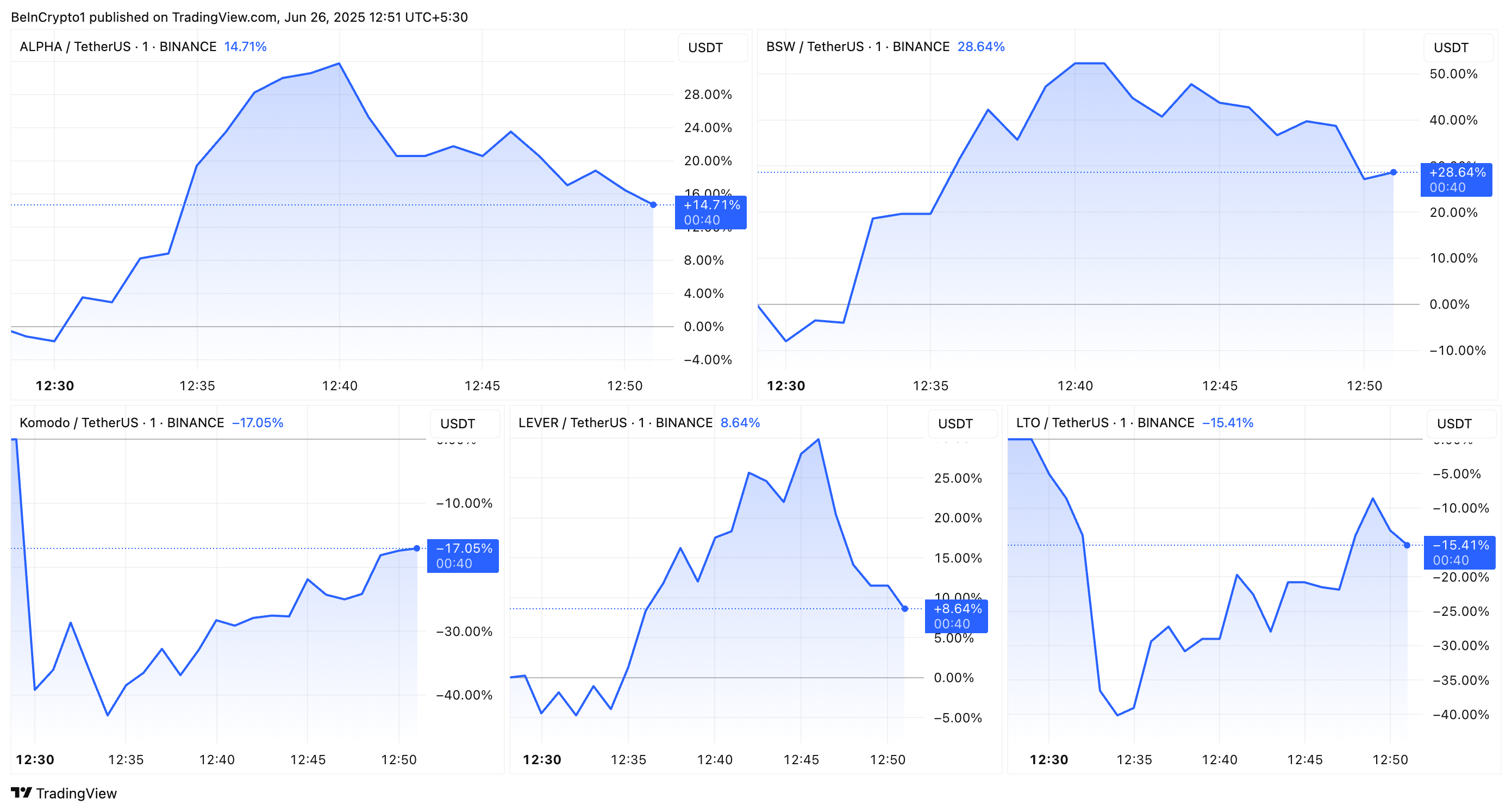 Tuy nhiên, sự phục hồi của chúng khá đáng chú ý khi nhanh chóng đảo ngược các tổn thất này. Tại thời điểm viết bài, ALPHA, BSW, và LEVER đã tăng lần lượt 14.7%, 28.6%, và 8.6%.