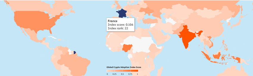 Theo báo cáo mới nhất về sự chấp nhận crypto từ Chainalysis, Pháp xếp hạng 22 trên toàn cầu về sự chấp nhận crypto.