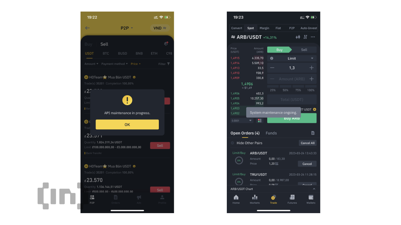 Tính đến thời điểm 19:24 ngày 24/3/2-23 theo giờ Việt Nam, sàn giao dịch tiền điện tử đứng đầu theo vốn hóa thị trường Binance dường như đang gặp sự cố. Hiện Binance đã ngừng mọi giao dịch spot và nguyên nhân được Binance thông báo là công cụ khớp lệnh của họ gặp sự cố.