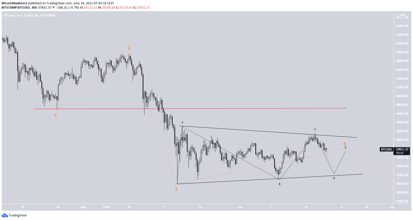 Số lượng sóng đếm thay thế chỉ ra rằng chuyển động hiện tại là một tam giác sóng 4. Trong trường hợp này, giá có thể giảm xuống đường hỗ trợ ở mức $33,000 một lần nữa trước khi thực hiện một chuyển động tăng khác.
