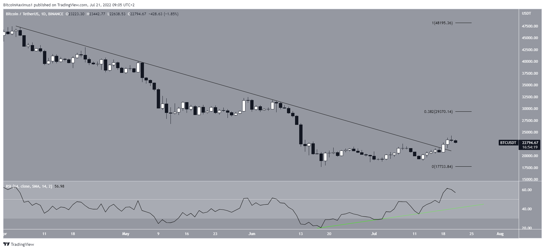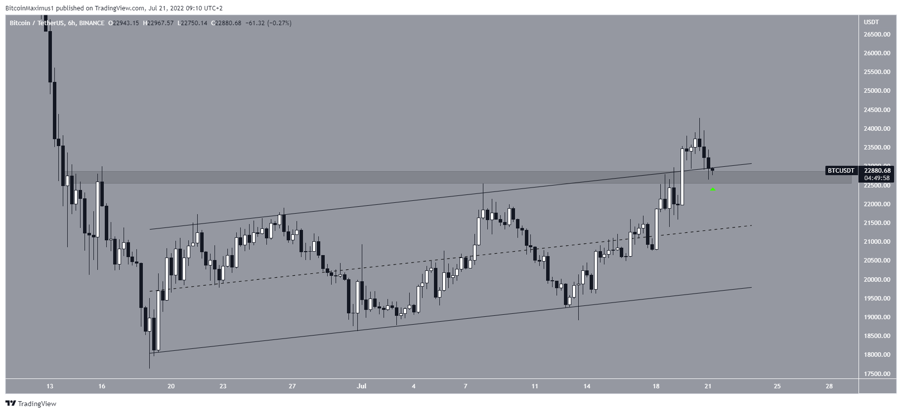 Vào ngày 20 tháng 7, giá đã bứt phá khỏi kênh song song tăng dần trong ngắn hạn và vùng kháng cự 22,700 USD. Tuy nhiên, sự sụt giảm sau đó đã khiến nó quay trở lại bên trong kênh và khu vực này một lần nữa.