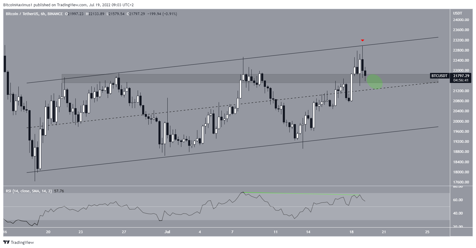 Tuy nhiên vẫn có dấu hiệu của sự tăng giá. Cụ thể, BTC vẫn đang giao dịch trên đường giữa của kênh và vùng hỗ trợ ngang 21,700 USD đã vạch ra trước đó.
