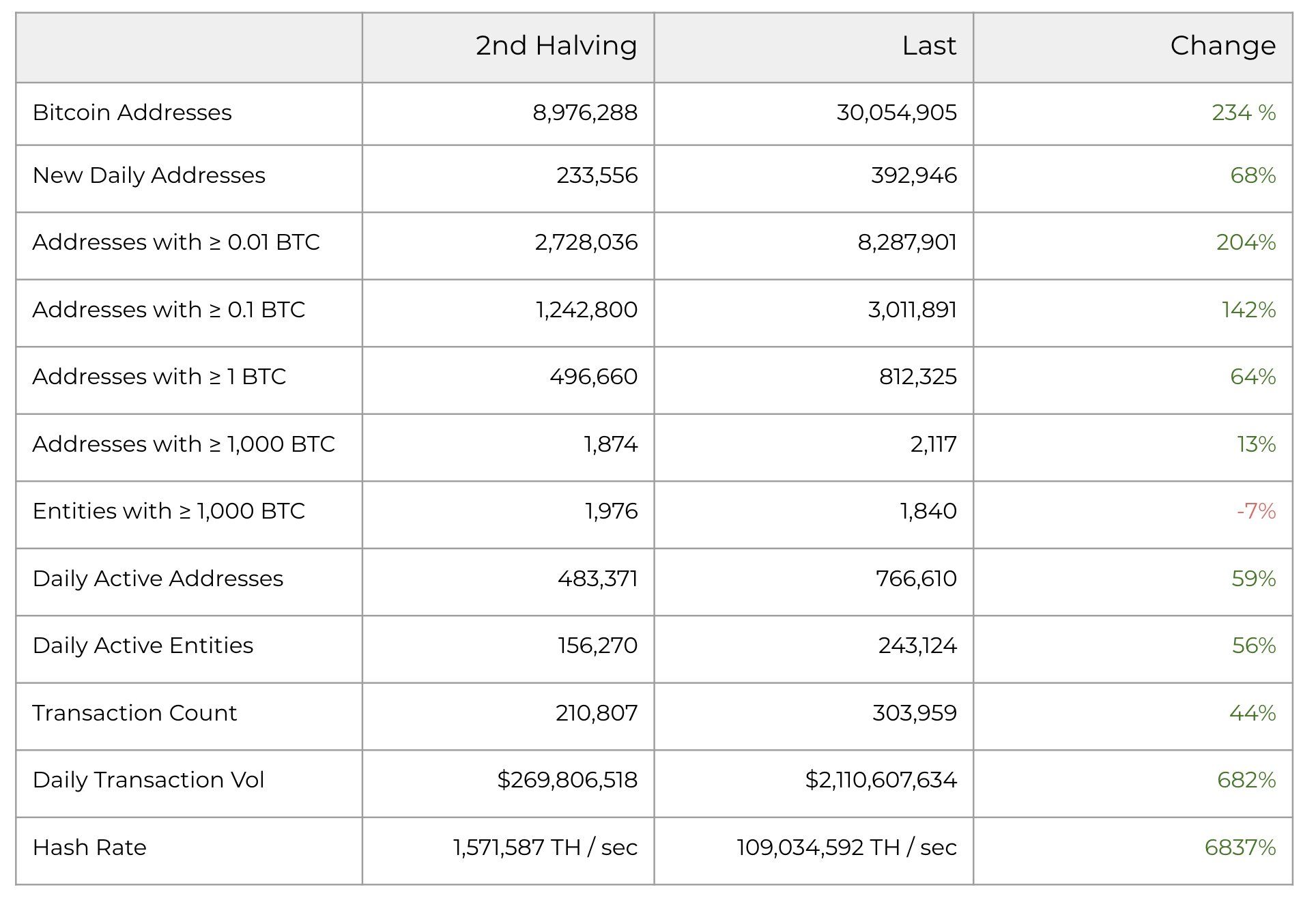 Nhà phân tích Rafael Schultze-Kraft của Glassnode đánh giá, các yếu tố nền tảng của Bitcoin mạnh chưa từng có. Ông đã đưa ra những so sánh về dữ liệu từ halving trước đó cho đến hiện tại như một minh chứng cho nhận định của mình.