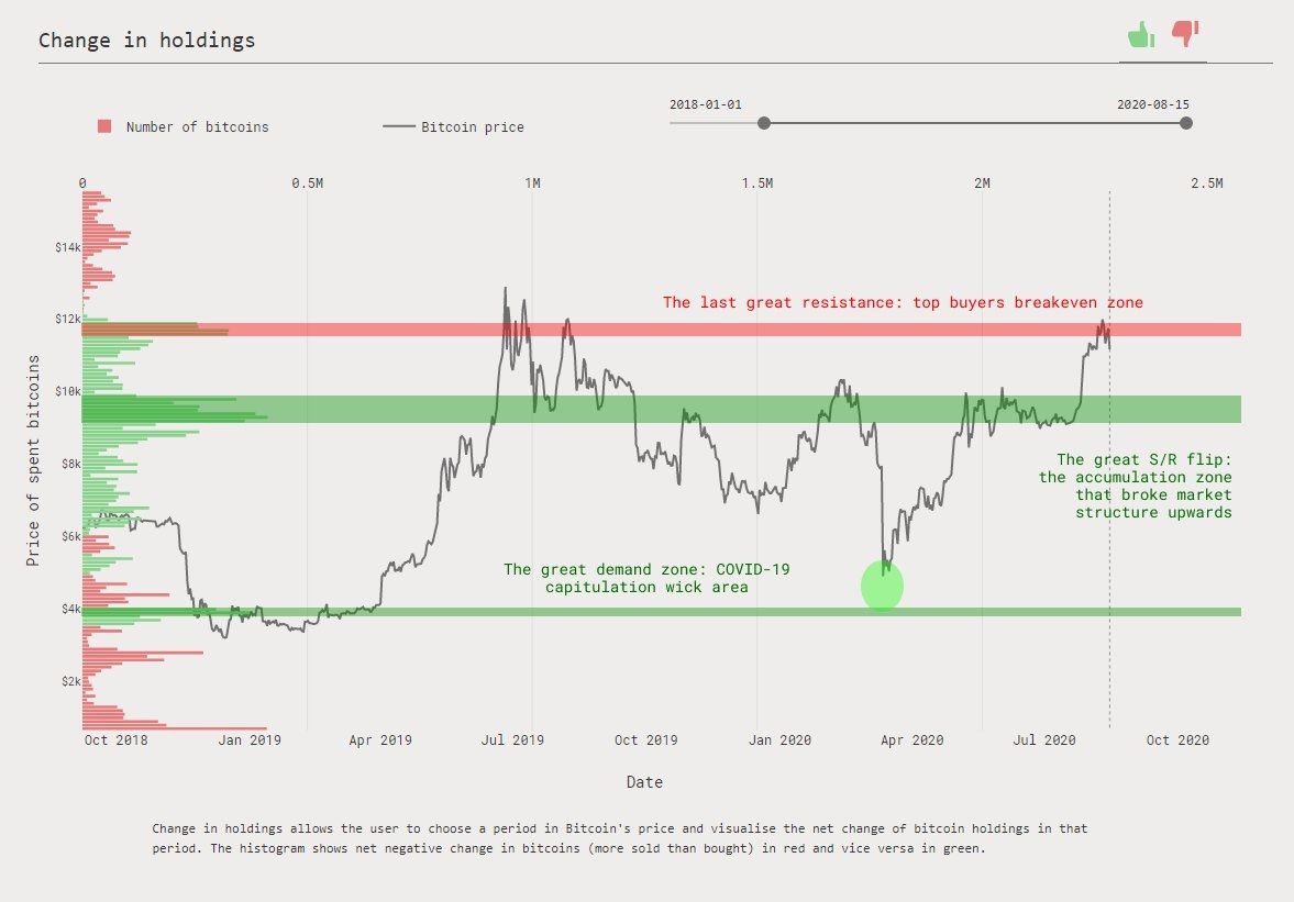 Theo nhà phân tích David Puell, 12.000 USD được xem là ngưỡng kháng cự trên chuỗi quan trọng cuối cùng của Bitcoin. Ông đã chia sẻ một biểu đồ cho thấy tầm quan trọng của ngưỡng giá 12.000 USD. Vì đó chính là đỉnh giá năm 2019 mà người mua đạt được điểm hòa vốn.