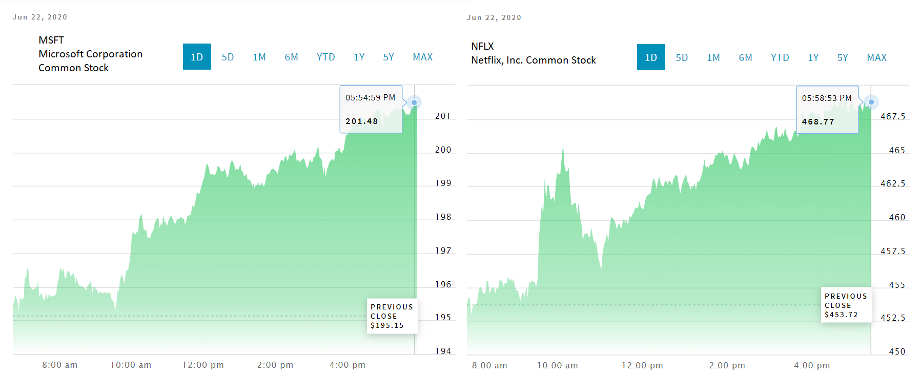 Đằng sau hành động tăng giá tối qua của BTC dường như là một hội tụ của các xu hướng. Đầu tiên là S&P 500 và các thị trường tài chính khác đã tìm thấy động lực. Sàn Nasdaq một lần nữa thiết lập kỷ lục, khi Microsoft và Netflix tăng vọt lên đến mức cao mới.