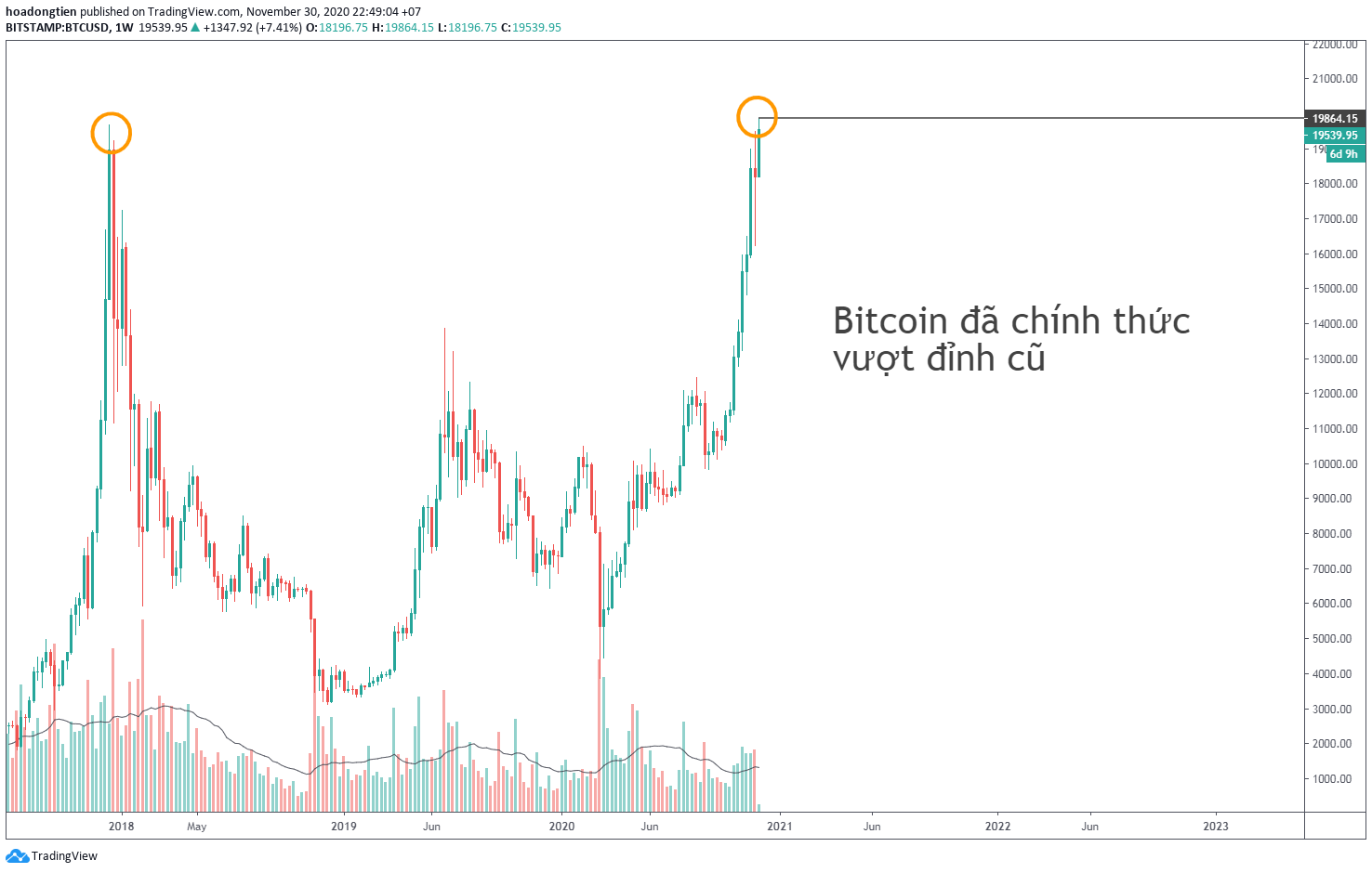 Thời điểm bài viết này, Bitcoin đã chính thức vượt đỉnh cũ với mức trên 19.800 đô la.