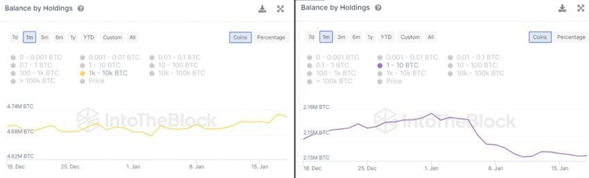 Điều thú vị là, các địa chỉ nắm giữ trên 1,000 BTC đã tăng mức nắm giữ của họ, trong khi những địa chỉ có ít hơn 1,000 BTC đã giảm mức nắm giữ trong tháng 1/2024 này. Mặt khác, số dư do những người nắm giữ ngắn hạn nắm giữ đã tăng lên kể từ tháng 10/2023, một xu hướng thường gắn liền với thị trường giá lên.