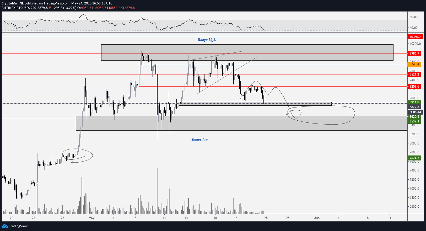 Trước đó, nhà giao dịch @CryptoMichNL cho rằng Bitcoin sẽ chạm đến mức thấp 8.250 USD nếu không thể duy trì trên ngưỡng hỗ trợ gần.