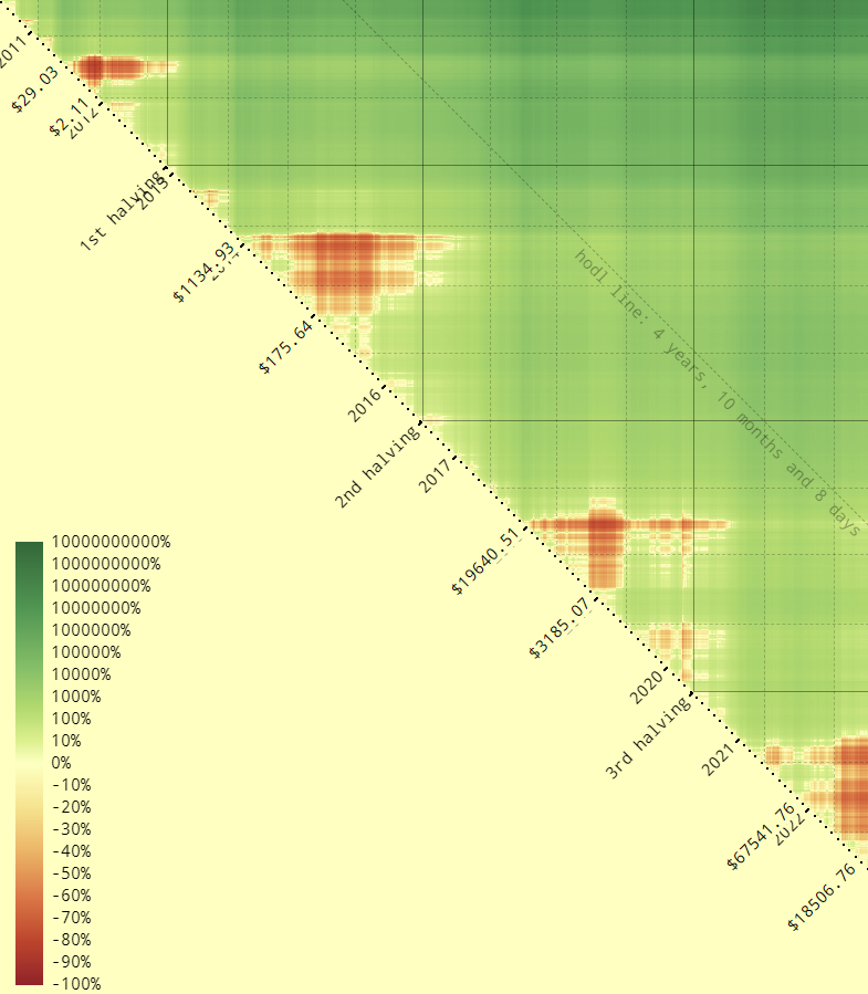 Nhóm thứ hai cho luận điểm rằng Bitcoin chống lạm phát liên quan đến kết quả dài hạn của nó với tư cách là một đối tượng giao dịch. Có những tính toán chính xác nói rằng không ai mua BTC và nắm giữ nó trong 3 năm, 4 tháng và 4 ngày là thua lỗ cả.
