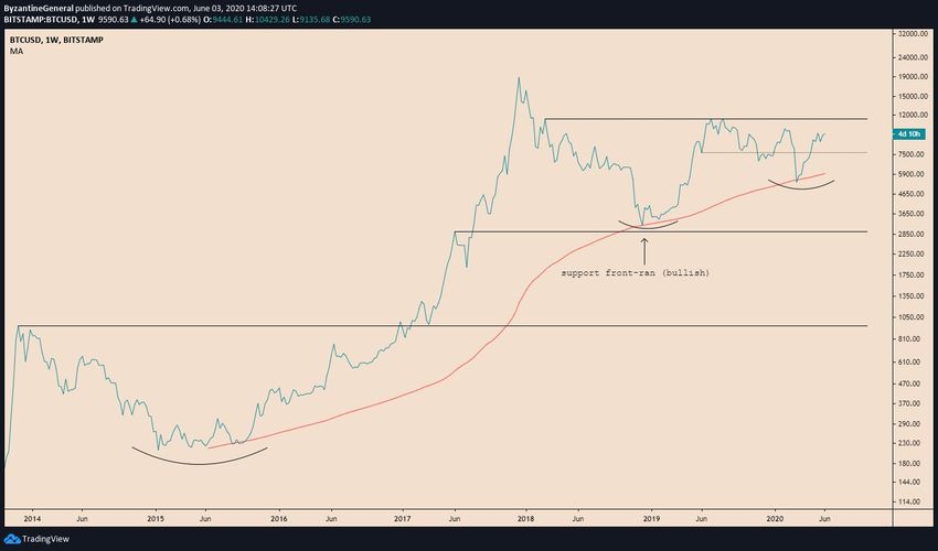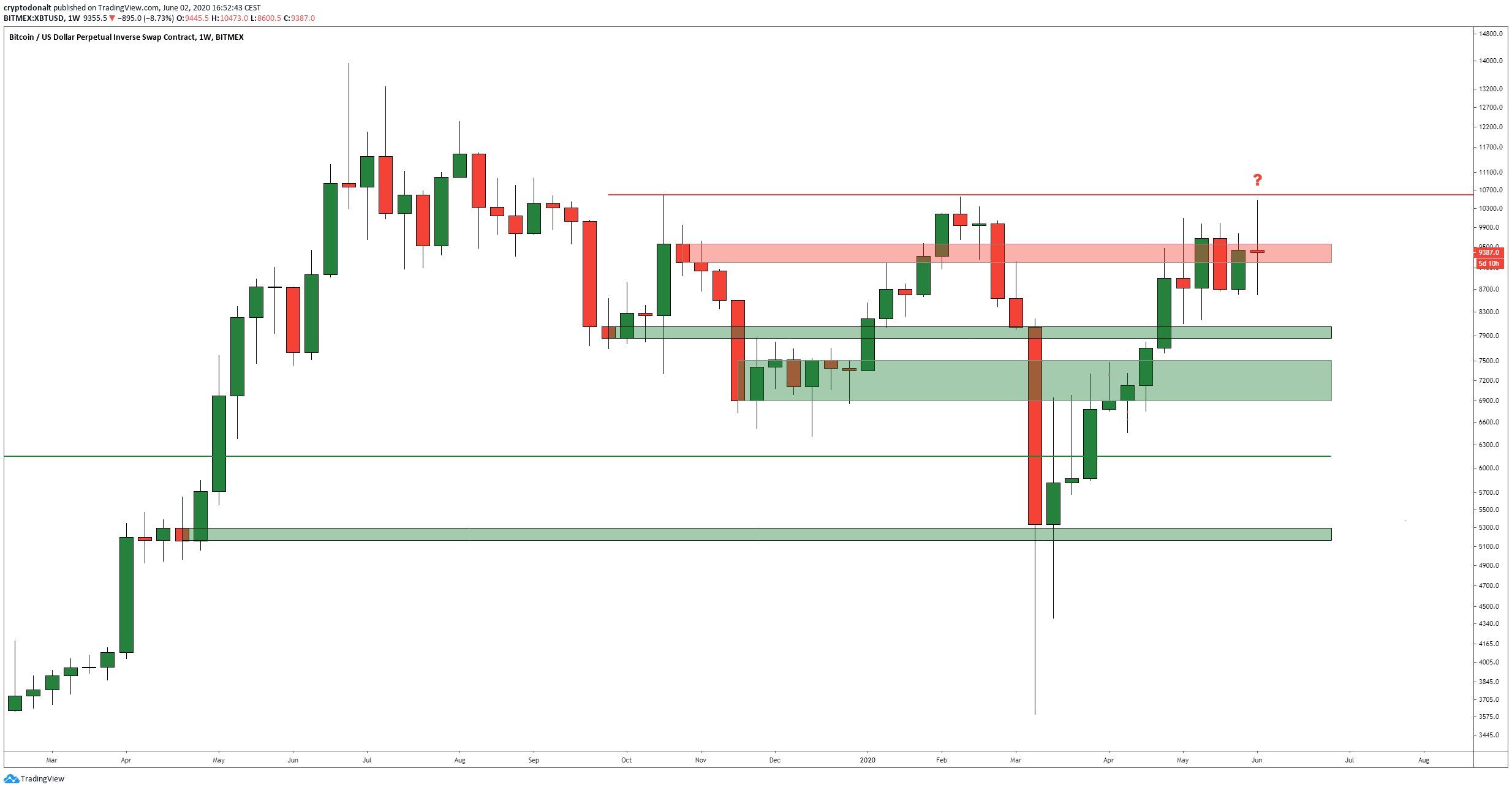 Nhà giao dịch @ByzGeneral cho rằng mọi dự đoán sẽ trở nên vô nghĩa một khi BTC vượt qua ngưỡng 10.500 USD. Điều đó có nghĩa khi đã phá vỡ lên trên ngưỡng giá này sẽ tạo ra một xu hướng tăng trưởng mạnh mẽ.