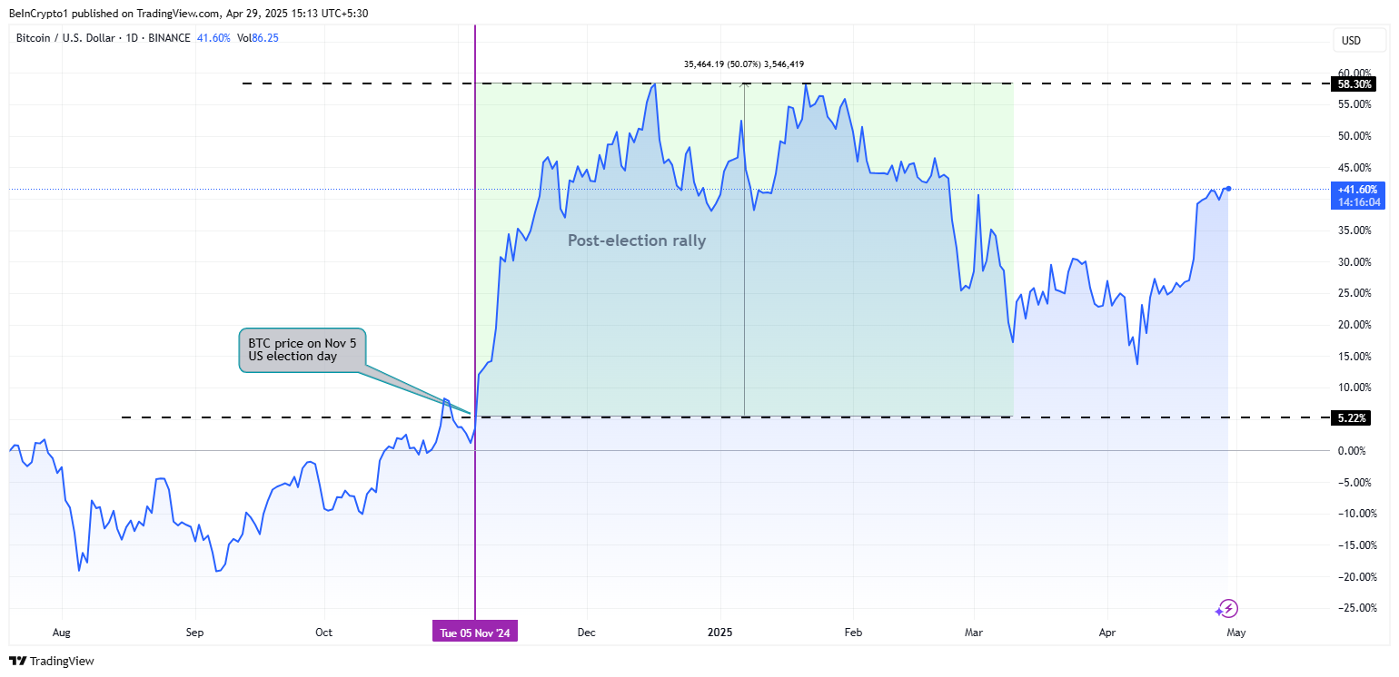 “Lần cuối cùng khoảng cách giữa dòng vốn Bitcoin và vàng ETF rộng như thế này là trong tuần của cuộc bầu cử Mỹ,” Kendrick nói với BeInCrypto.