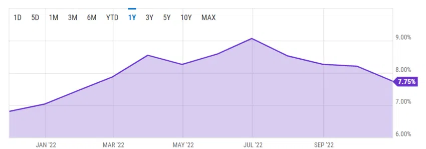Theo dữ liệu lịch sử ghi nhận, chỉ số PPI (Producer Price Index) ngày càng tăng là một yếu tố dự báo cho các cuộc suy thoái trước đây. Suy thoái kinh tế có thể xảy ra vào Q1/2023, nhưng chỉ được công bố chính thức vào Q2 hoặc Q3. Đầu tháng này, chênh lệch giữa lợi suất 10 năm và 3 tháng là khoảng -0.4%.