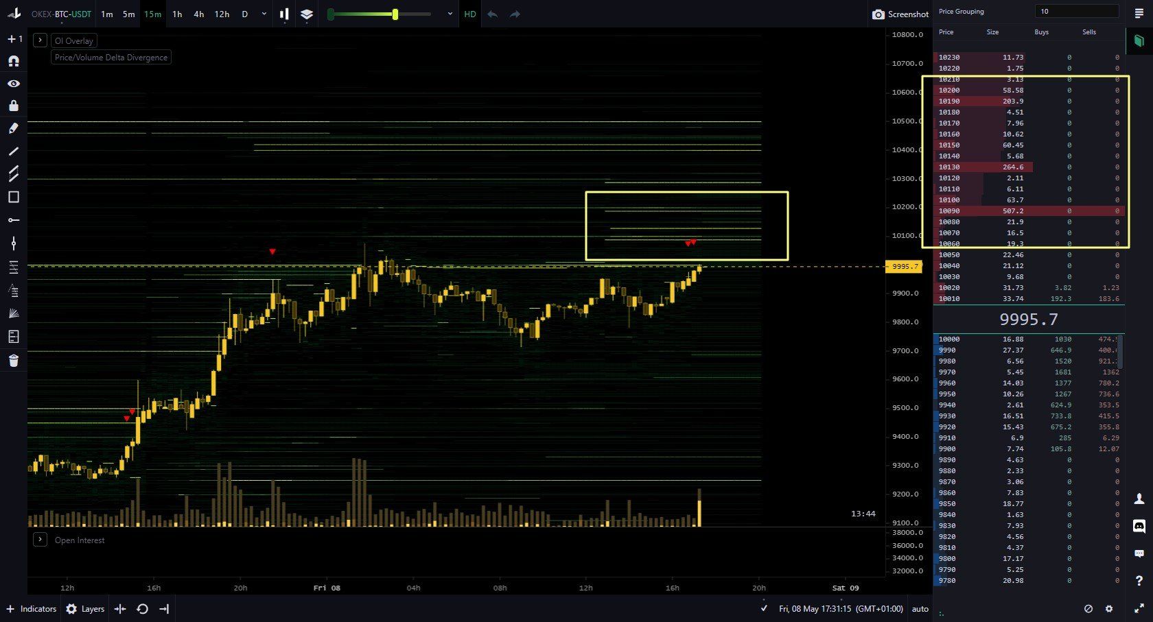 Tương tự, tại OKEx cũng xuất hiện tường bán. Theo nhà giao dịch @Yodaskk, hiện có khoảng 1.000 BTC đang chờ bán có giá lên tới 10.200 USD. Một lần nữa càng chứng tỏ BTC sẽ gặp nhiều khó khăn hơn khi muốn vượt qua mức giá từ 10.000 USD trở lên.