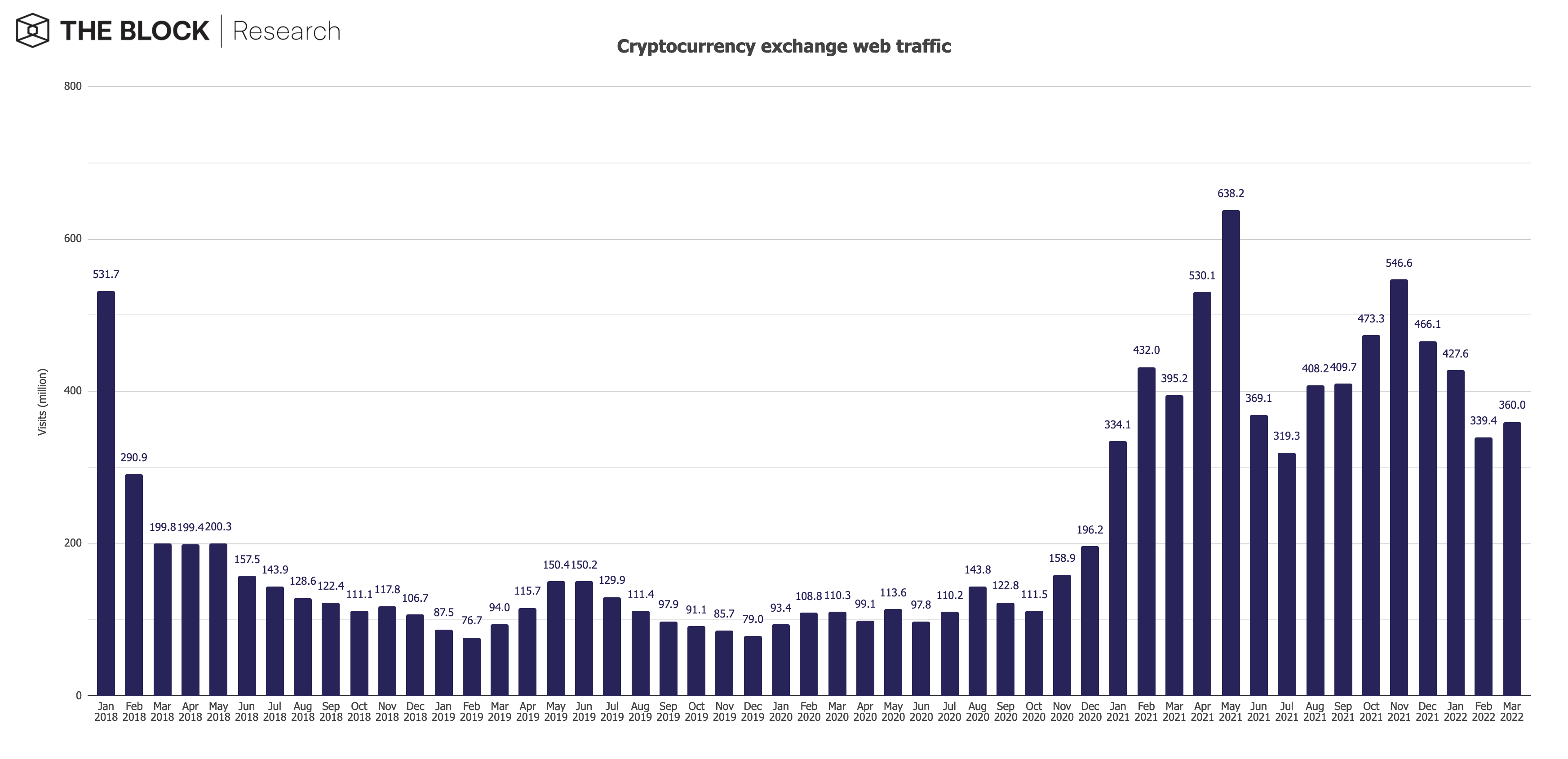 Tháng 3 vừa qua, lượng truy cập vào các sàn giao ngay và phái sinh có dấu hiệu tăng trở lại.