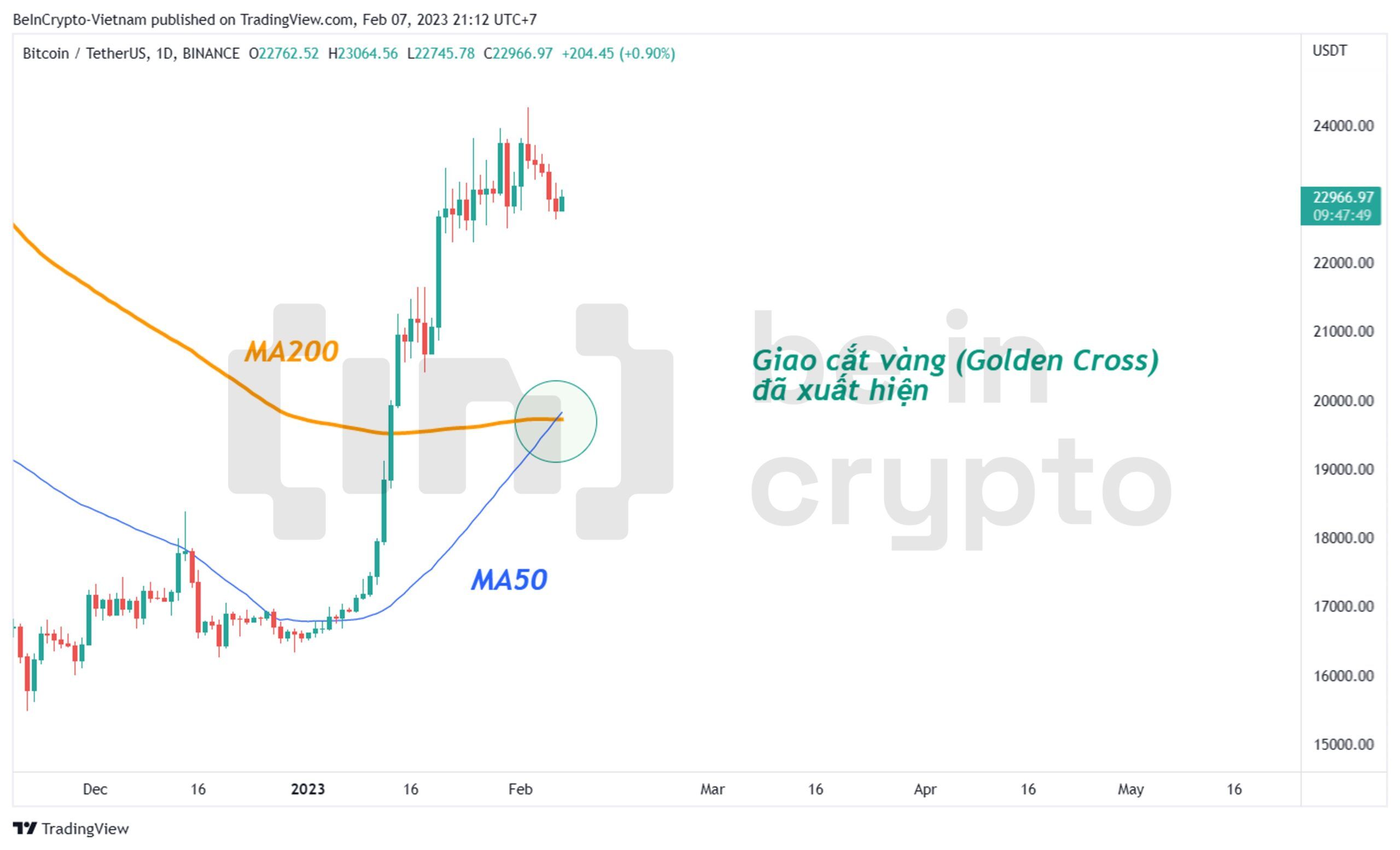 - Và hiện tại chúng ta đang chứng kiến một lần nữa Golden Cross như thế xảy ra. Điều này dấy lên hy vọng BTC sẽ còn vững đà tăng cho đến hết năm 2023.