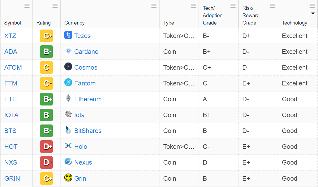Trong khi đó, Ethereum (ETH) được xếp ở vị trí thứ 5 với phân loại tốt về mặt công nghệ. Ngoài ETH, trong nhóm những đồng coin và token tốt về công nghệ còn có Iota (IOTA), BitShares (BTS), Holo (HOT), Nexus (NXS), Grin (GRIN).