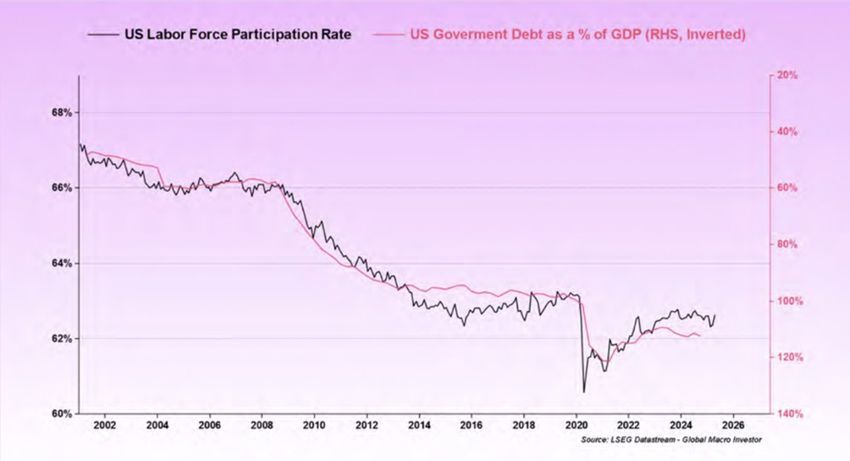 Ông chỉ ra Nhật Bản như một câu chuyện cảnh báo, với dân số già hóa, năng suất trì trệ và mức nợ tăng cao buộc phải nới lỏng tiền tệ vô tận.