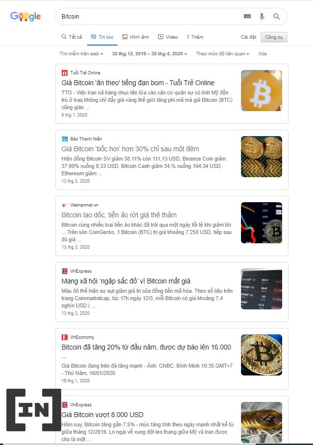Khi tìm kiếm trên trang mạng với từ khóa “Bitcoin” vào giai đoạn 4 tháng đầu năm. Chúng ta không khỏi bất ngờ khi tiền điện tử chưa được phổ biến tại Việt Nam. Nhưng nhiều trang báo có tên tuổi lại quan tâm và cập nhật thông tin.