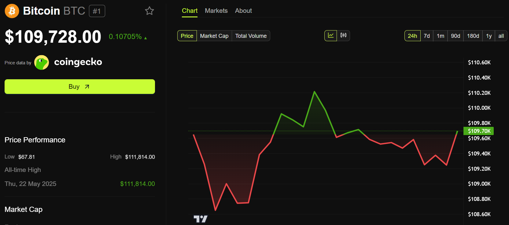 Đây là lần đầu tiên CPI tăng trong 3-4 tháng. Ngay sau đó, Bitcoin đã ghi nhận một đợt tăng nhẹ, tiến gần đến 110,000 USD tại thời điểm viết bài.