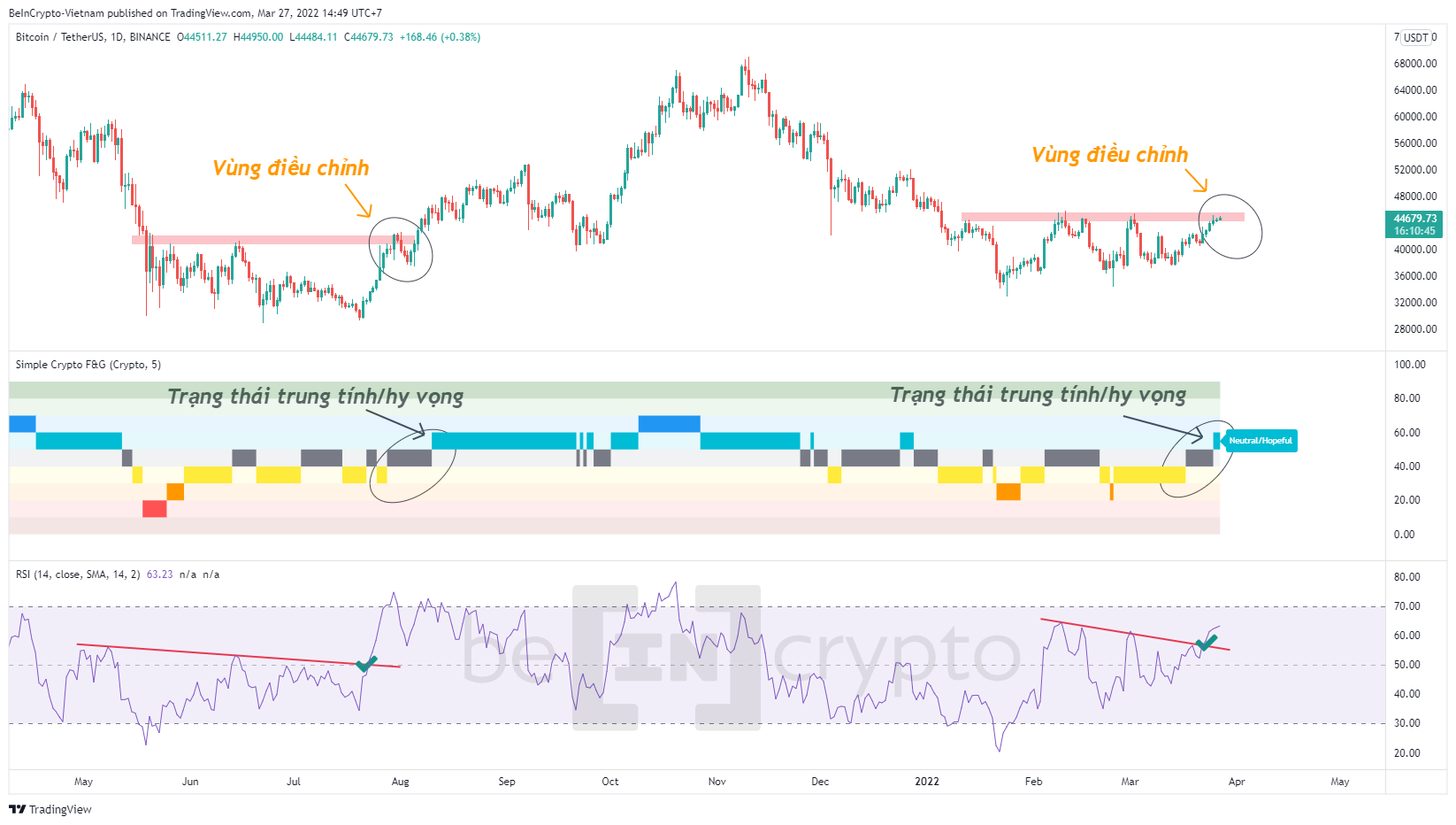 Hai tuần tháng 3 vừa qua đã vẽ nên đường giá Bitcoin bằng những nến D1 bậc thang chậm rãi kéo dần lên kháng cự quan trọng. Trong khi đó thị trường xuất hiện rất nhiều tin tức tích cực nhưng Bitcoin vẫn chưa đột phá.