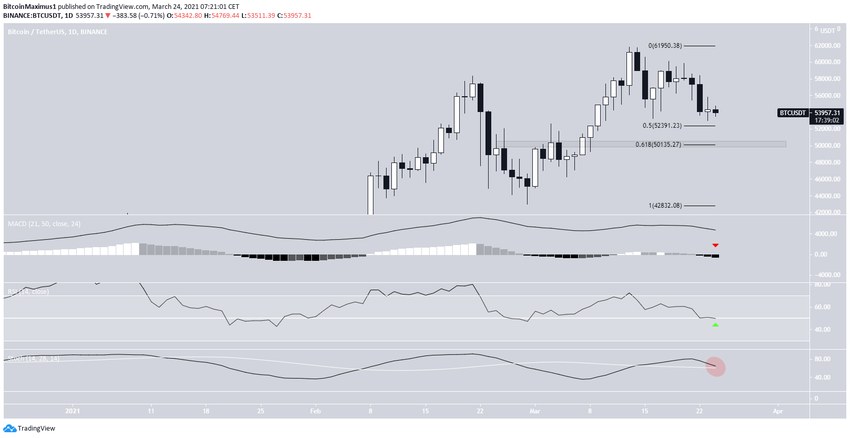 Bởi vì, các chỉ báo kỹ thuật đang giảm. Do đó, một viễn cảnh có khả năng xảy ra nhất là giá Bitcoin giảm xuống mức hỗ trợ 52,500 USD hoặc 50,250 USD được nêu trước đó.