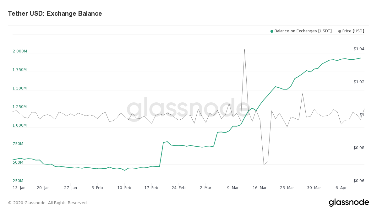 Số lượng Tether được nắm giữ trên các sàn tăng gấp đôi