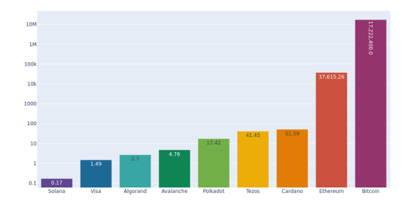 Một altcoin khác nổi bật về hiệu quả năng lượng là Solana (SOL). Vào tháng 2 năm ngoái, Viện xếp hạng các-bon tiền điện tử (CCRI) đã công bố một báo cáo tính toán mức tiêu thụ điện và lượng khí thải carbon của các blockchains chạy PoS. Trong số các phát hiện, điều đáng chú ý là Solana. Mặc dù SOL liên tục giảm, nhưng Solana đã trở thành giao thức PoS tiết kiệm năng lượng nhất so với các mạng khác.