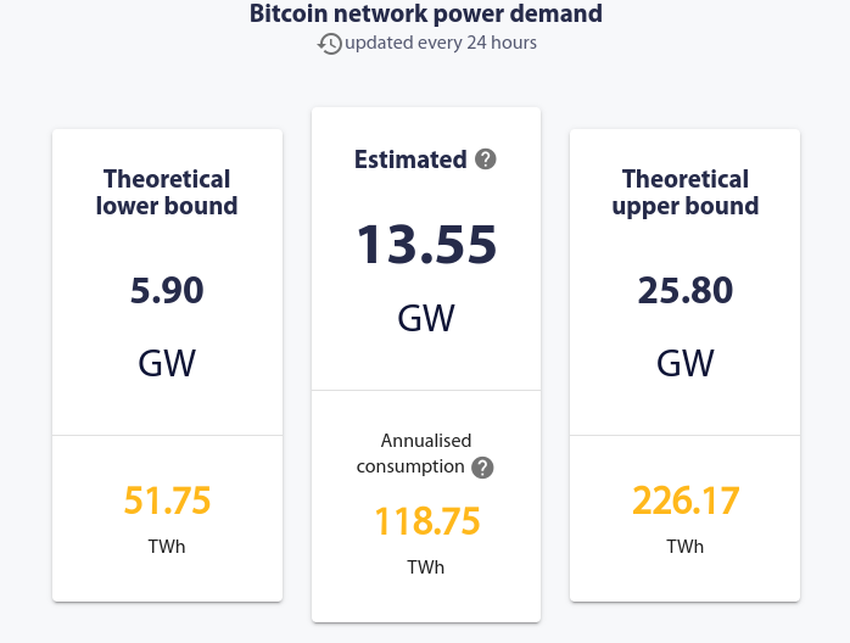 Tuy nhiên, sau một năm, con số này đã giảm đáng kể. Tại thời điểm xuất bản, Đại học Cambridge đặt mức tiêu thụ năng lượng của Bitcoin dưới 118.75 TW/h mỗi năm. Với dữ liệu thu thập được, nhà phân tích bày tỏ: