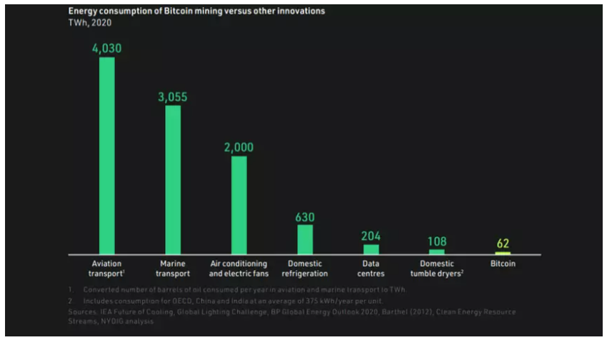 Mặt khác, theo một báo cáo cập nhật vào tháng 9/2021 của New York Digital Investment Group (NYDIG). Họ đã nhấn mạnh rằng mức tiêu thụ năng lượng liên quan đến khai thác Bitcoin sẽ vẫn ở mức trung bình dưới 0.5% tổng lượng phát thải carbon trong 10 năm tới.