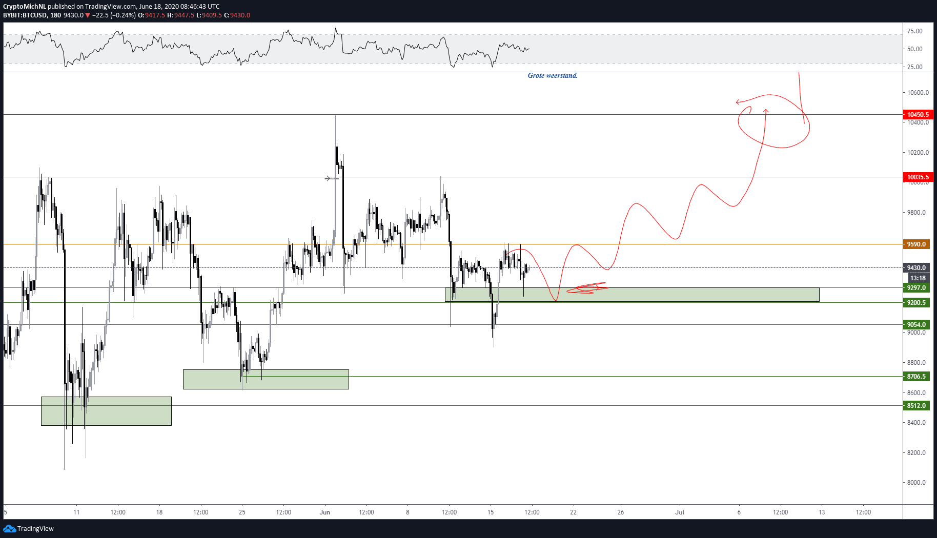 Để Bitcoin đẩy lên cao hơn trong ngắn hạn và khẳng định sức mạnh nền tảng này thì cần giữ vững được một khu vực giá quan trọng. Theo @CryptoMichNL, khu vực hỗ trợ chính đó nằm khoảng từ 9.200 USD – 9.250 USD.