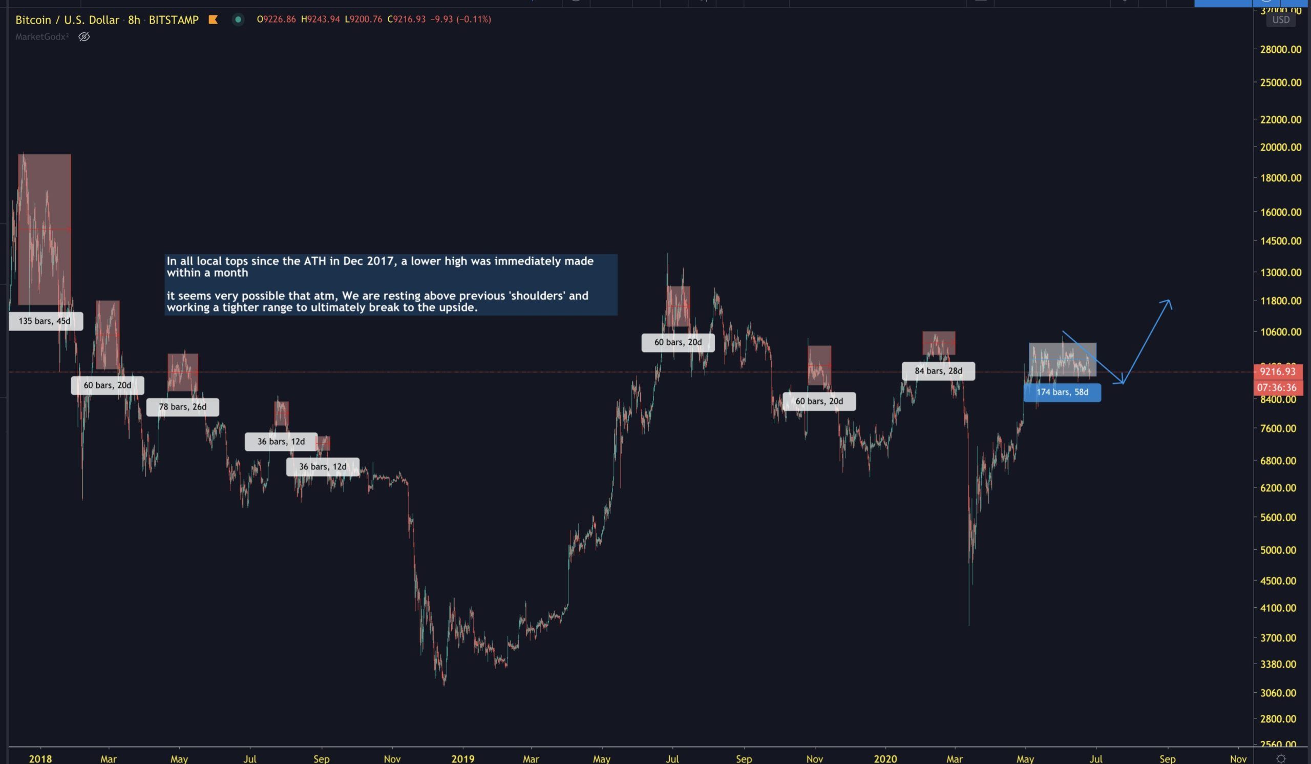 “Cấu trúc hiện tại của BTC ít giống với 1 đỉnh cục bộ, mà giống với 1 bệ phóng hơn. Nói một cách tự nhiên thì nó có thể đi xuống trước khi thực sự đi lên, nhưng lần này trông có vẻ hứa hẹn.”