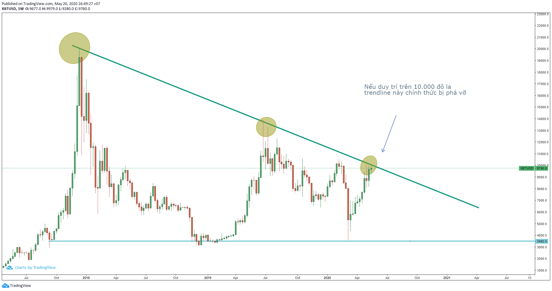 Vượt 10.000 đô la sẽ mang rất nhiều ý nghĩa cho thị trường trong dài hạn. Đây cũng chính là cản lớn cho một xướng rất dài của thị trường bấy lâu nay.