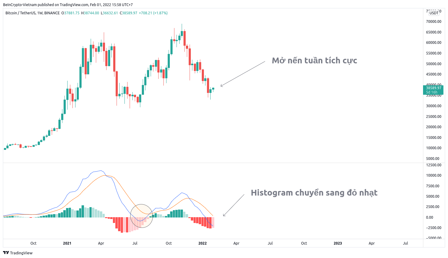 - Điều tương tự này cũng xảy ra hồi tháng 7, kể từ sau thanh histogram đỏ nhạt đầu tiên, biến động giá có xu hướng tạo thêm những thanh histogram ngắn hơn. Nghĩa là giá Bitcoin phục hồi tốt hơn. Đó là cơ sở để chúng ta dự đoán kịch bản tương tự sẽ lặp lại.