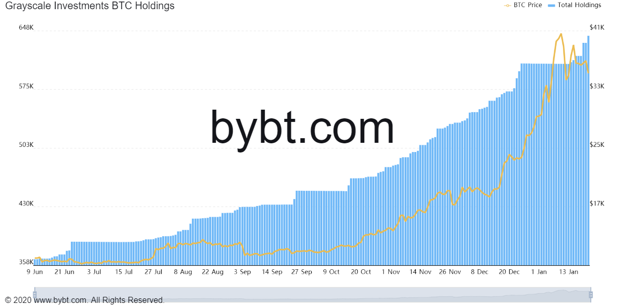 Tuy nhiên, một tín hiệu đáng mừng là Grayscale, một nhà đầu tư Bitcoin hàng đầu vẫn tiếp tục mua vào. Theo Bybt, trong 24 giờ qua, nhà đầu tư này đã mua thêm 8.762 BTC, nâng tổng số coin đang nắm giữ lên 641.520 BTC với giá trị hơn 22 tỷ USD.