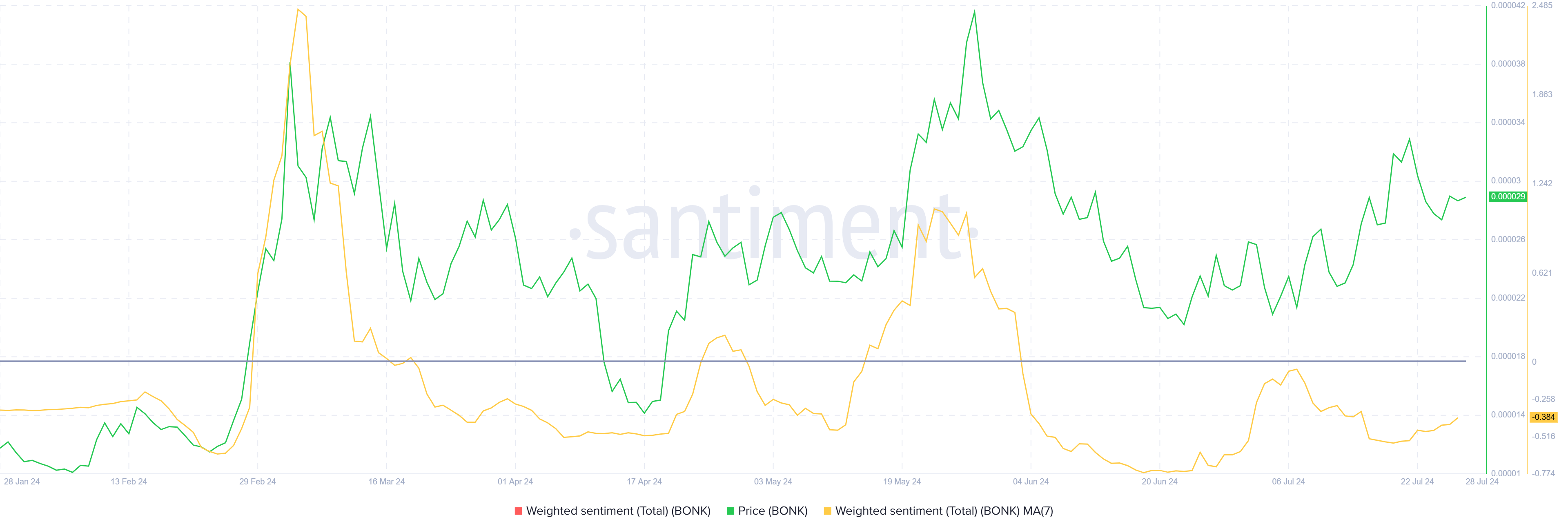 Giá BONK không làm nhà đầu tư nhỏ lẻ thất vọng , nhưng cũng không đáp ứng được kỳ vọng của họ, điều này thể hiện rõ qua sự thay đổi tâm lý của họ.