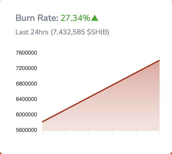 Gần đây, việc đốt SHIB và tích lũy token của cá voi Ethereum đã tác động tích cực đến giá của meme coin này. Vào thời điểm BeInCrypto viết bài, tỷ lệ đốt Shiba Inu tăng vọt hơn 27% trong 24 giờ.
