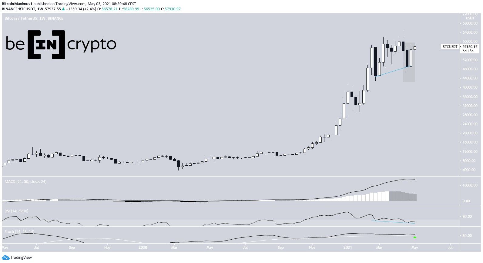Chỉ báo MACD có vẻ đang mất đà nhưng nhìn chung vẫn là tăng. Do đó, có khả năng xu hướng dài hạn của BTC vẫn là tăng giá.