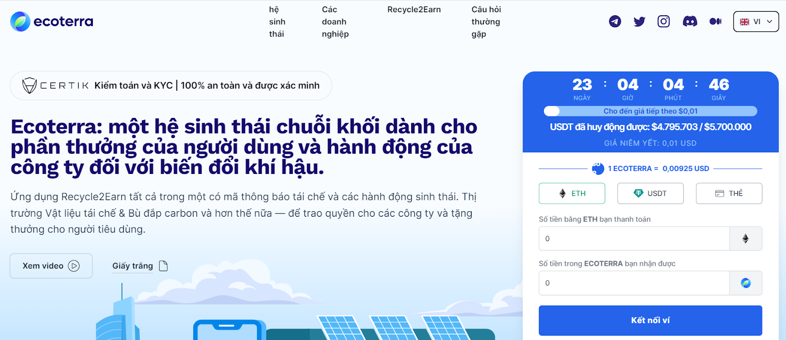 Ecoterra – Ứng dụng Recylce2Earn xây dựng dự án tiền điện tử xanh mới, huy động được hơn 4.7 triệu USD