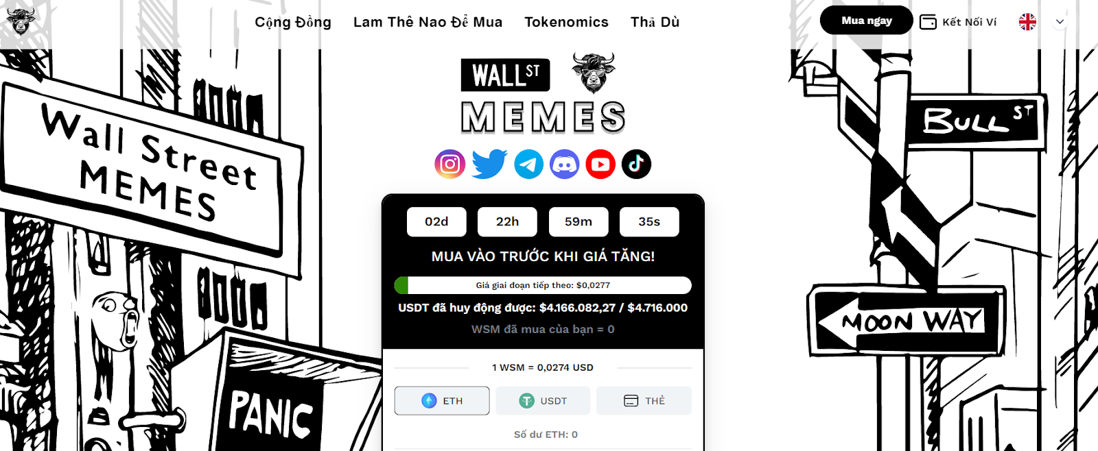 SponsoredMã thông báo WSM, được thiết kế dành riêng cho cộng đồng Wall Street Memes, có phân bổ nguồn cung cấp mã thông báo là 50% cho đợt bán trước, 30% cho phần thưởng cộng đồng và 10% cho thanh khoản CEX và DEX. Việc bán trước cho phép các thành viên cộng đồng mua mã thông báo WSM bằng nhiều tùy chọn khác nhau như ETH, BNB, USDT hoặc thẻ ngân hàng.