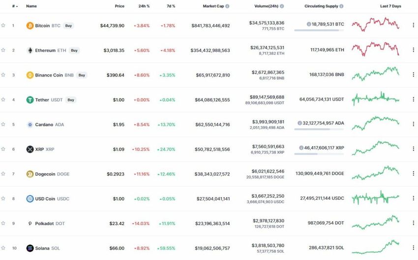 Trong top 10 tiền điện tử hàng đầu thì tất cả các đồng tiền đều cho thấy động thái chuyển động tiêu cực trong vòng 24 giờ qua. Ngoại trừ các stablecoin USD Coin. Mức lỗ lớn nhất trong ngày được ghi nhận tại Polkadot (-14.03%).