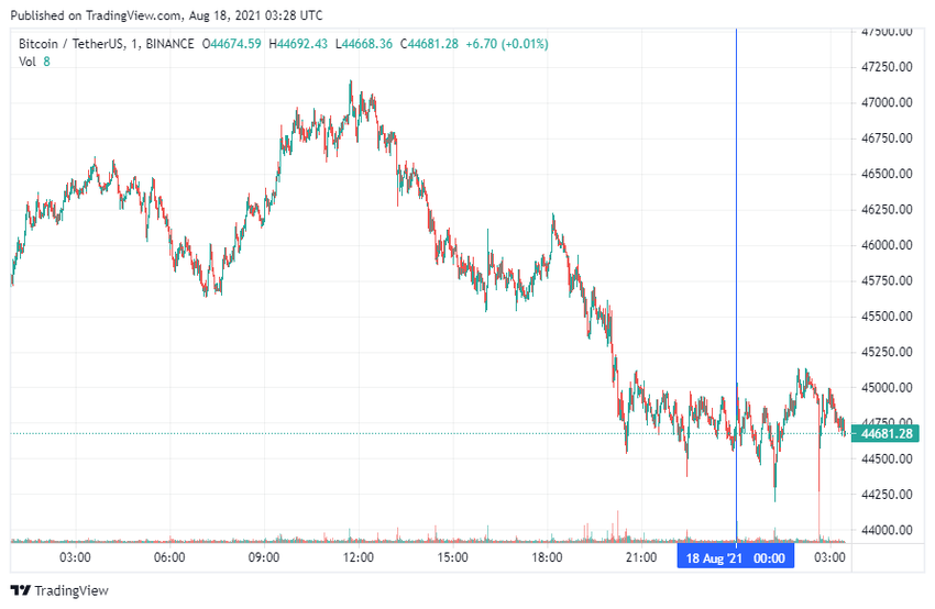 Bitcoin (BTC) đã bắt đầu thứ Tư với một chuyển động ngang. Vào lúc 06:29 (giờ Moscow), tiền điện tử đang được giao dịch ở mức 44,681 USD.