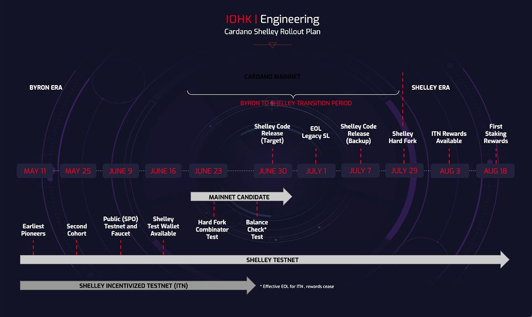 Trước đó, CEO của IOHK cũng đã công bố lịch trình cập nhật cho Cardano. Theo đó, quá trình triển ra mạng lưới sẽ diễn ra từ 30/6 đến 7/7. Lịch trình cũng cho thấy, đến cuối tháng này thì bản hardfork Shelley sẽ được công bố, chính thức bước vào thời kỳ Shelley.
