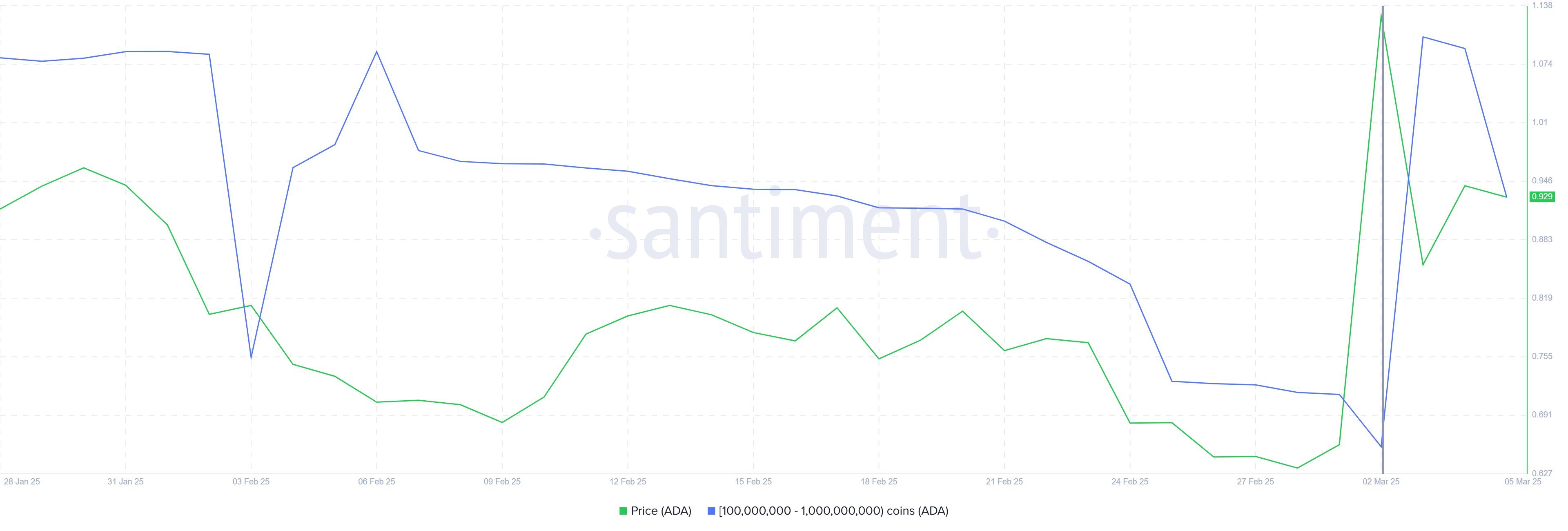 Mặc dù có sự lạc quan ban đầu sau khi Cardano tham gia vào kế hoạch dự trữ tiền điện tử của Trump, khi những “cá voi” này mua vào ADA trị giá 404 triệu USD trong một ngày, những hành động này cho thấy rằng “cá voi” không chắc chắn liệu đợt tăng giá có tiếp tục hay không. Với ảnh hưởng của họ đối với thị trường, quyết định của họ rất quan trọng trong việc định hình triển vọng ngắn hạn cho ADA.