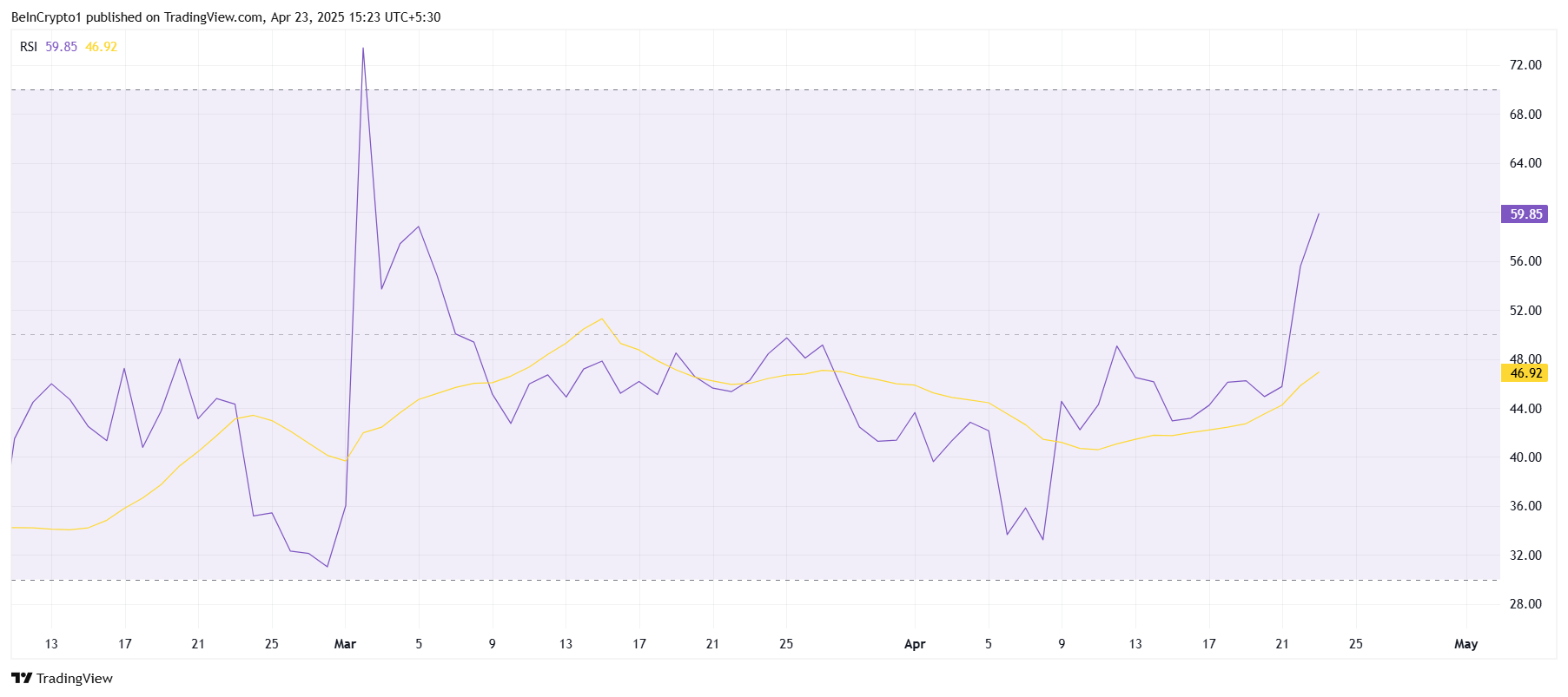 Trên cấp độ vĩ mô, đà tăng của Cardano được hỗ trợ bởi nhiều chỉ báo kỹ thuật, đặc biệt là Relative Strength Index (RSI). Hiện tại, RSI đang ở mức cao nhất trong 7 tuần, trên đường trung lập 50.0, báo hiệu sự tự tin ngày càng tăng của nhà đầu tư và áp lực mua gia tăng. Đà tăng của RSI nhấn mạnh triển vọng tích cực của thị trường đối với ADA, cho thấy Cardano đang lấy lại đà sau một thời gian trì trệ.