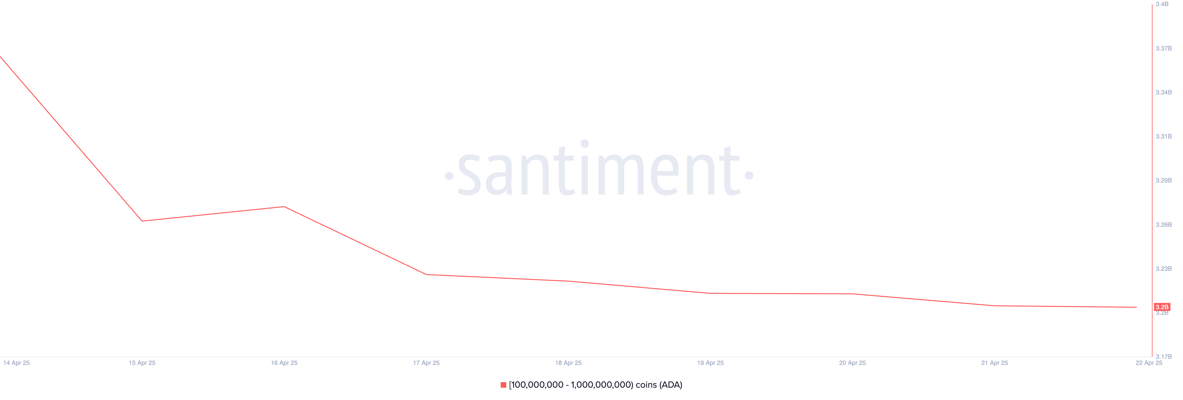 Hiệu suất kém của Cardano trong tuần qua đã khiến một số nhà đầu tư lớn bắt đầu bán ra coin của họ. Dữ liệu on-chain cho thấy các cá voi ADA nắm giữ từ 100 triệu đến 1 tỷ coin đã bán ra hơn 160 triệu USD giá trị tài sản này trong bảy ngày qua.